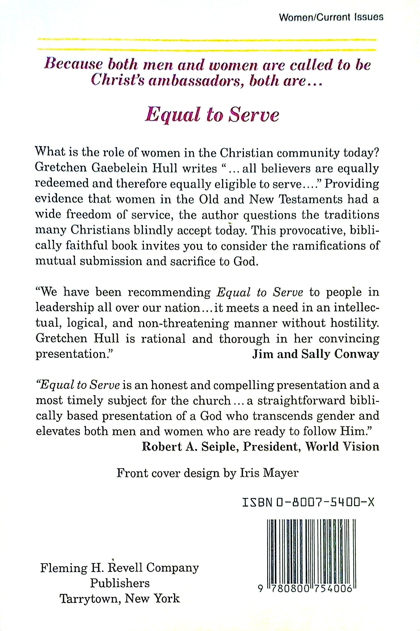 Scripture quotations identified Berkeley are from The Modern Language Bible The New Berkeley Version in Modern English, Copyright 1945, 1959, 1969 by Zondervan Publishing House, and are used by permission. Scripture quotations identified kjv are from the King James Version of the Credit lines continue on page 5. Library of Congress Cataloging-in-Publication Data Hull, Gretchen Gaebelein. Equal to serve. Bibliography: p.