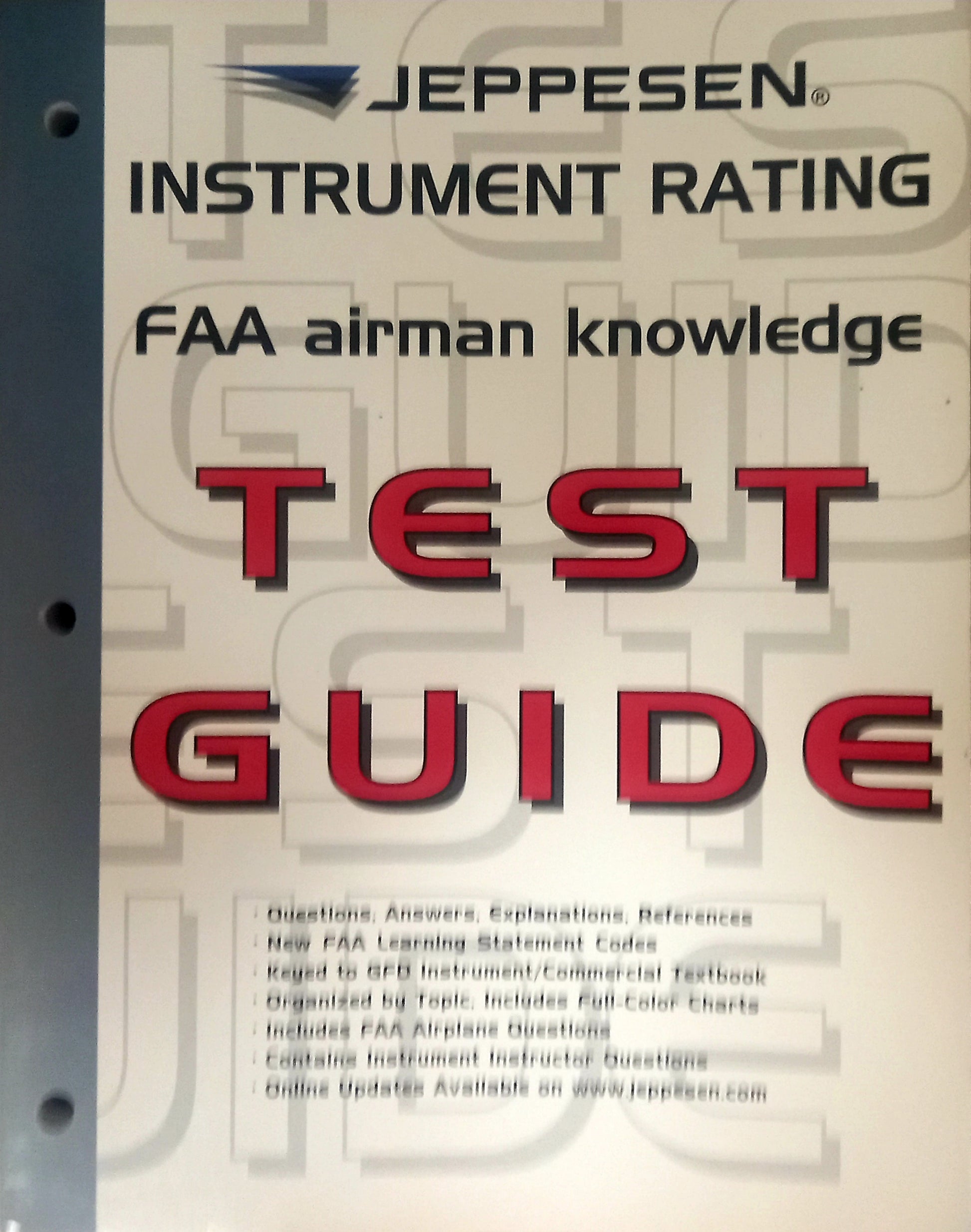 This test guide contains all of the FAA instrument rating knowledge test questions along with the correct answers, detailed explanations, and study references. Subject areas are organized by topic and coordinated with the Instrument/Commercial Manual. The 3-hole punched, perforated pages allow you to select and remove specific pages for more effective study. Full-color charts identical to those on the FAA test and a unique sliding mask for self-testing.