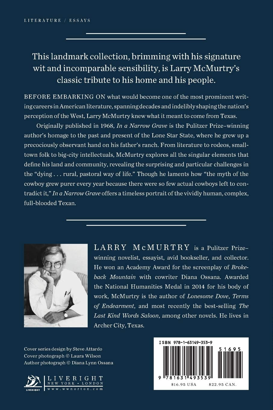 Before embarking on what would become one of the most prominent writing careers in American literature, spanning decades and indelibly shaping the nation’s perception of the West, Larry McMurtry knew what it meant to come from Texas. Originally published in 1968, In a Narrow Grave is the Pulitzer Prize–winning author’s homage to the past and present of the Lone Star State, where he grew up a precociously observant hand on his father’s ranch.
