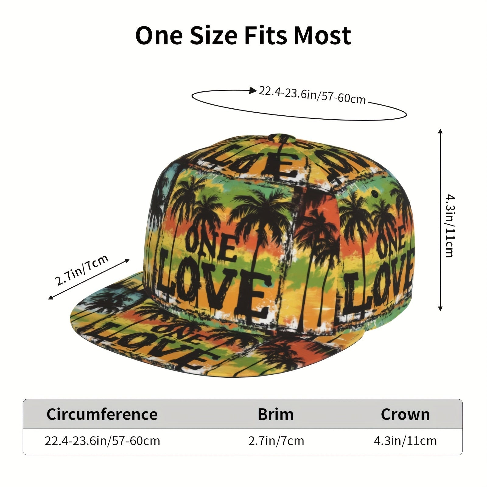 Bring the beach, the music, and the good vibes with you everywhere you go with the One Love Jah Rasta Vibe Snapback. This cap is drenched in a colorful, graffiti-style print featuring the iconic Rasta colors (Red, Gold, Green), shadowy Tropic Palm Trees, and the powerful "ONE LOVE" message.