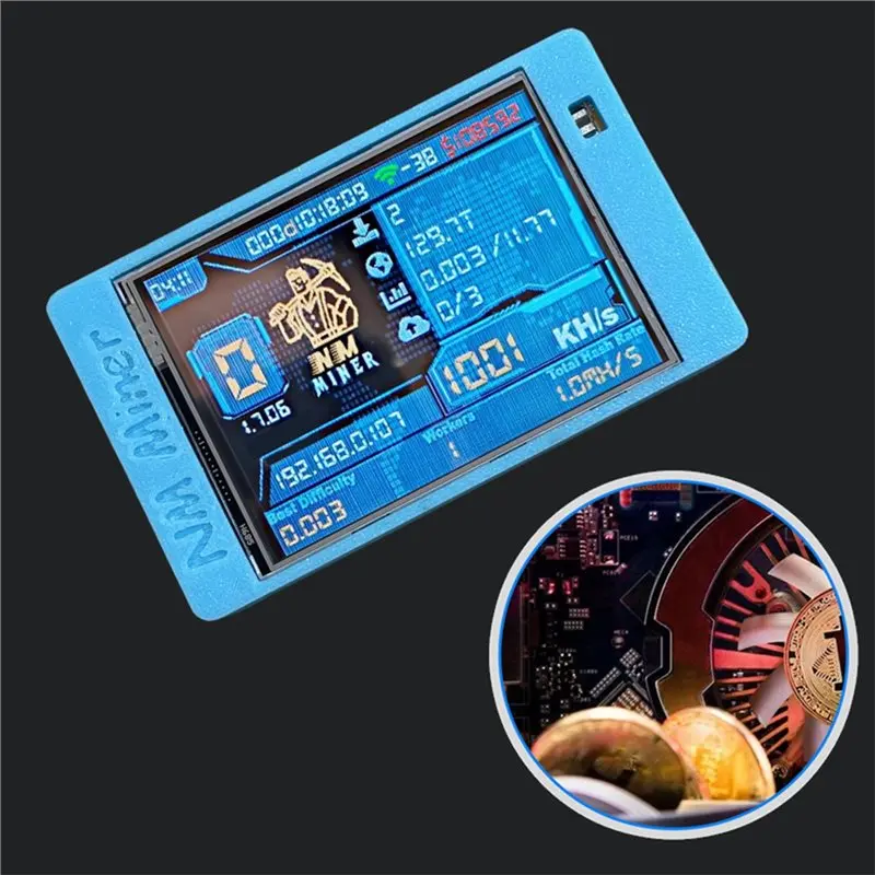 Level up your home mining setup with the Sodial NMMiner Upgrade. This isn't just a gadget; it's a high-performance Bitcoin Solo Miner running specially optimized firmware to achieve a massive 1000KH/s Hashrate. Housed in a sleek light blue casing with a large 2.8-inch color display, it offers a visually stunning and user-friendly interface to monitor your lottery mining operations in real-time.