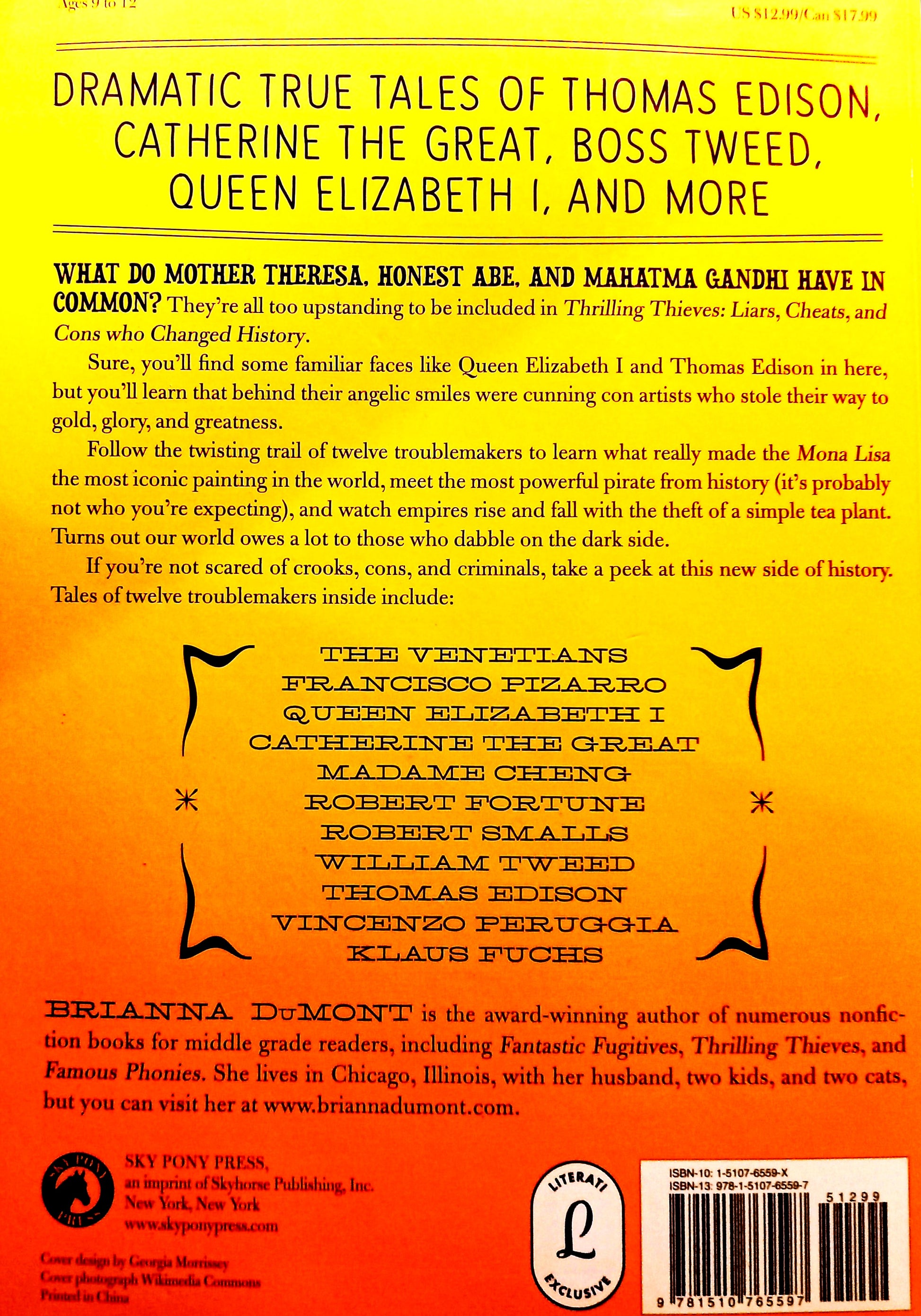Sure, you’ll find some familiar faces like Queen Elizabeth I and Thomas Edison in here, but you’ll learn that behind their angelic smiles were cunning con artists who stole their way to gold, glory, and greatness.