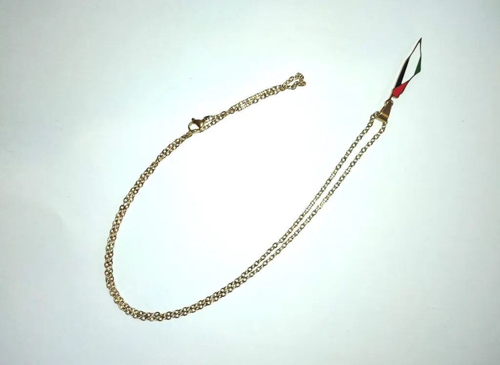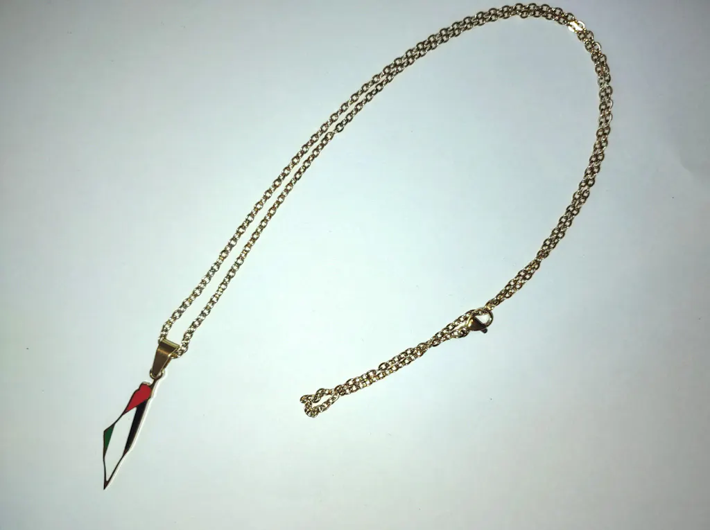 Show your unwavering support for the Palestinian people and their struggle for freedom and justice with our exquisite Palestinian Pendant Flag Emblem Necklace. Crafted with meticulous care, this necklace features a delicate pendant adorned with intricate designs inspired by traditional Palestinian embroidery. The pendant is a symbol of resilience, hope, and the unyielding spirit of the Palestinian people. By wearing this necklace, you not only make a fashion statement but also become a part of a global movement for peace and human rights.